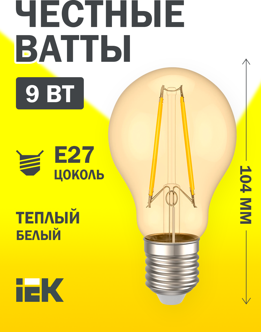 Лампа светодиод 9Вт груша А60 Е27 2700К 1080Лм золото филамент прозр IEK (10/100)