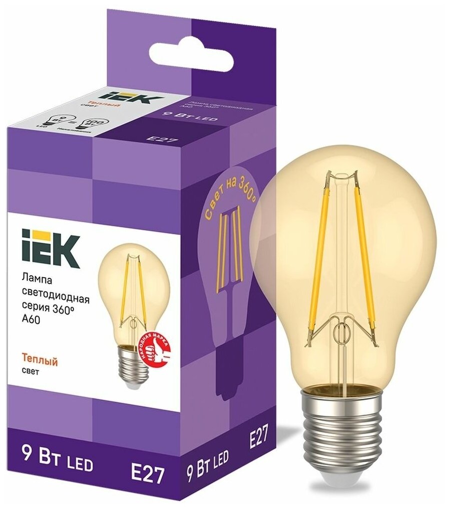 Лампа LED A60 золото 9Вт 230В 2700К E27 серия 360° IEK (1 шт.)