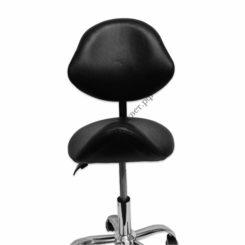 Стул седло на колесах со спинкой для мастера маникюра косметолога, тату мастера, бровиста MY 01 черный