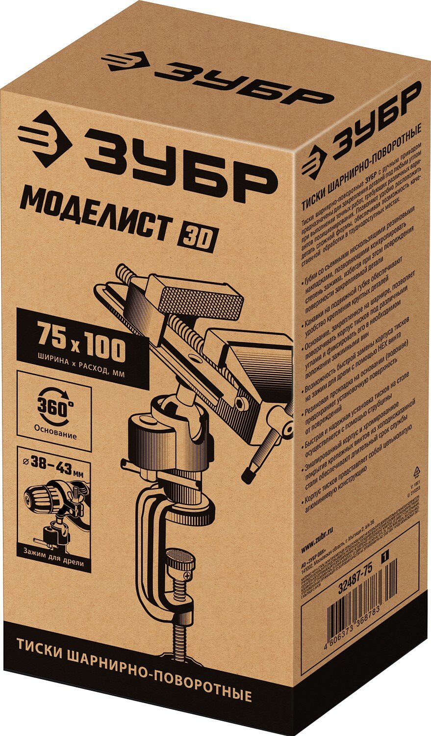 ЗУБР Моделист, 75 мм, шарнирно-поворотные тиски (32487-75)