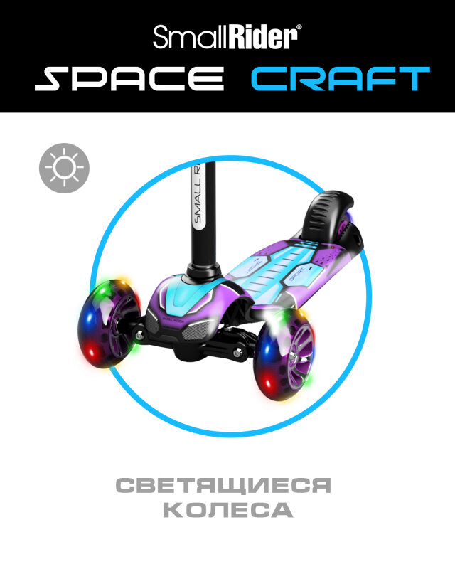 СохранитьСамокат SMALL RIDER Turbo Spacecraft 3, детский, 3-колесный, 120мм, 110мм, фиолетовый [mega043] интересное: