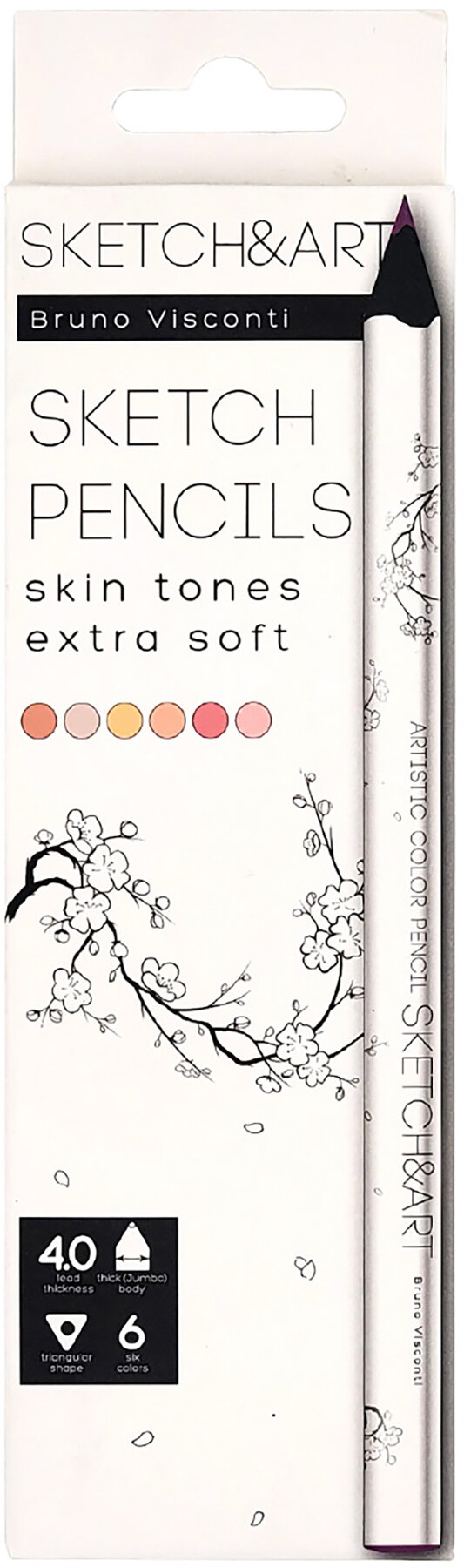 Карандаши цветные художественные 6 цветов Bruno Visconti Sketch&Art Портрет (L=175мм, 3гр)