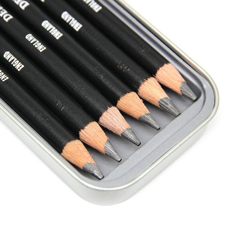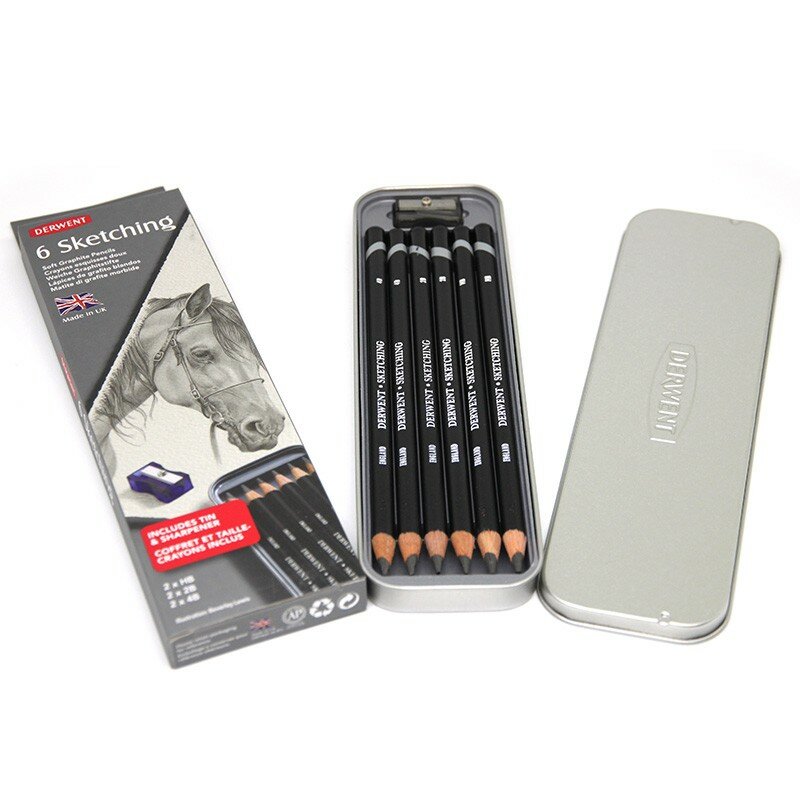 Набор чернографитовых карандашей Derwent Sketching 6 шт. с точилкой в металлической упаковке 0700836 интересное: