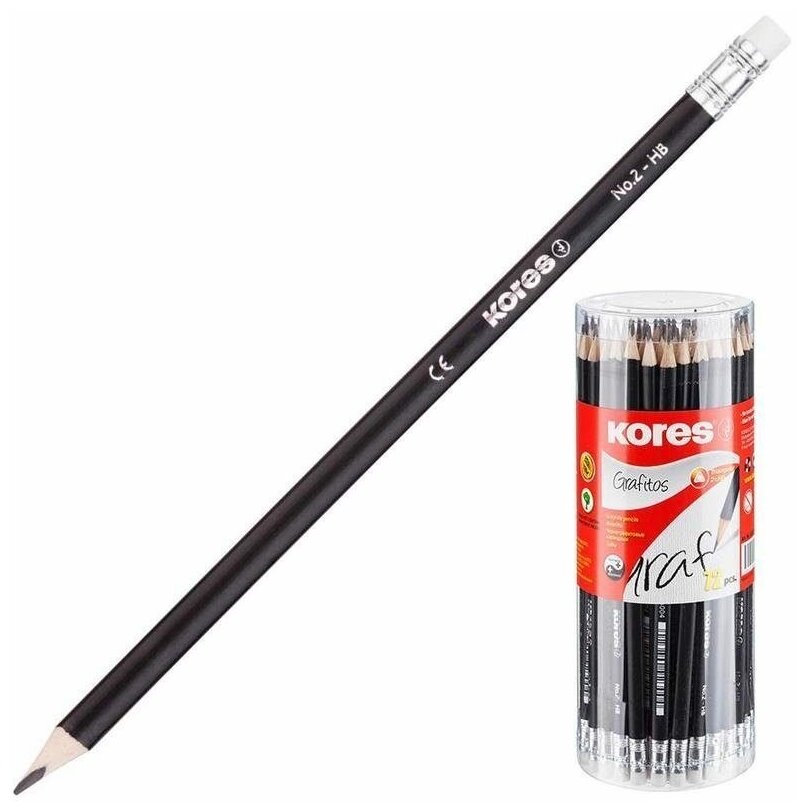 Kores Набор чернографитных карандашей HB заточенные с ластиком 72 шт.