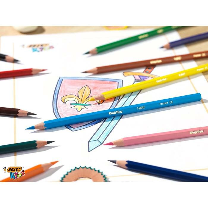 Карандаши цветные BIC «Kids ECOlutions Evolution», 24 цвета, пластиковые, заточенные, европодвес, 937515 интересное: