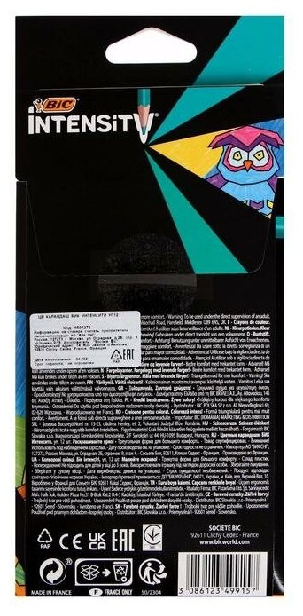 Карандаши цветные BIC "Intensity", 12 цветов, трехгранные, пластиковые, европодвес, 9505272