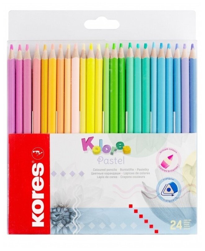 Карандаши цветные Kores 24 цвета, трехгранные, Kolores pastel (93321)