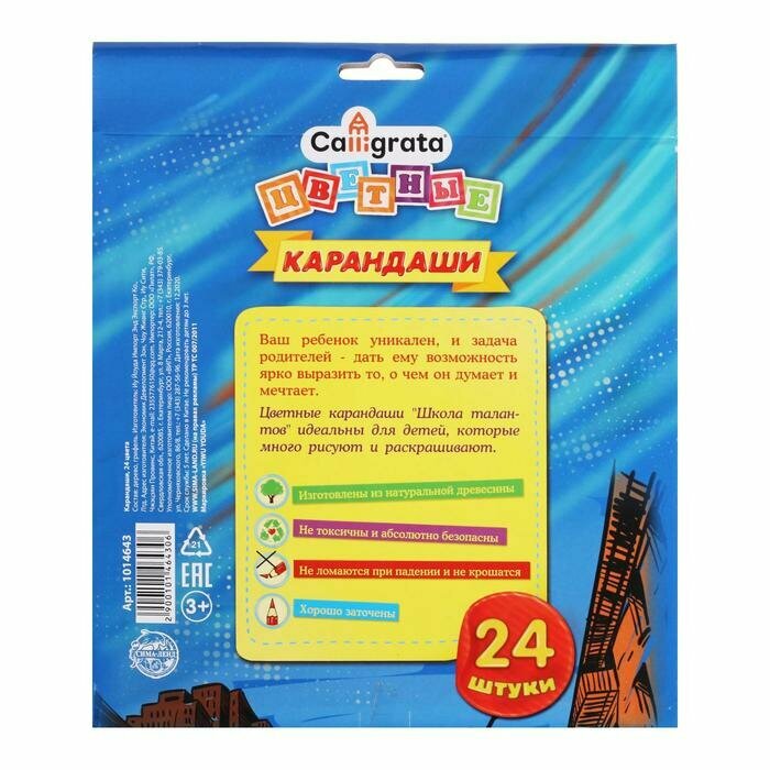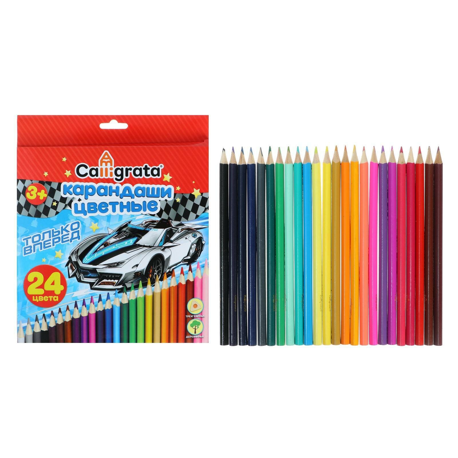 Карандаши Calligrata Машинка, 24 цвета, деревянные, трехгранные, 2B, 1 упаковка