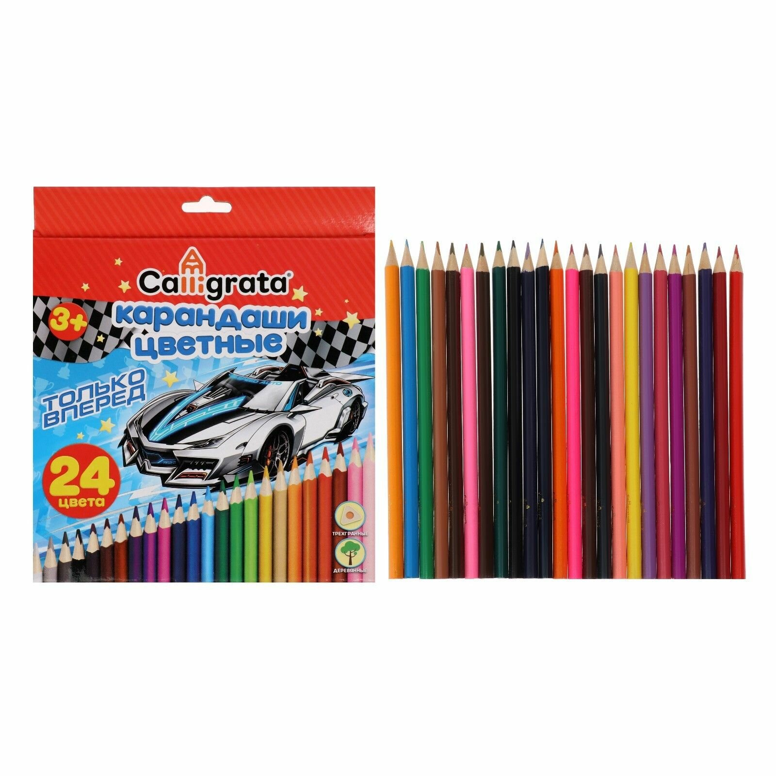Карандаши 24 цвета в картонной коробке CALLIGRATA Машинка, деревянные, треугольные 1014643