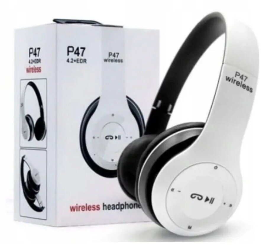 Беспроводные наушники P47 Wireless, Беспроводные наушники накладные P47 Multi (MicroSD Card, microUSB, AUX, клавиши управления, микрофон), белый