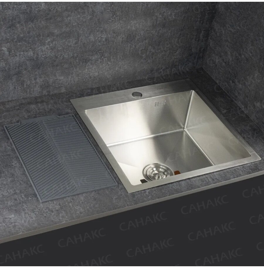 Fabia 50503G Profi Мойка врезная 50х50 см Графит толщина 3,0 х 0,8 мм, глубина 200 мм+большой сифон .