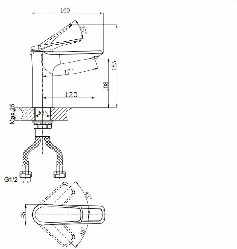 RUSH Смеситель для умывальника,антрацит RUSH Nevis (NE1735-12ant )