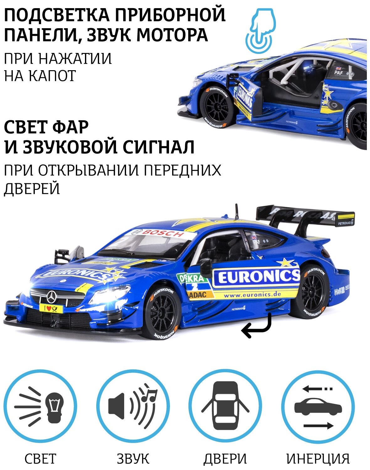 Машина металлическая Mercedes-AMG C 63 DTM1:32,открываютсяперед двери, световые и звуковые эффекты, инерция, цвет чёрный