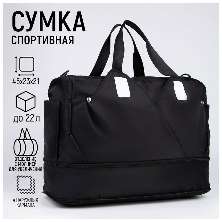 Купить NAZAMOK Сумка спортивная на молнии с увеличением, 4 наружных кармана, цвет чёрный