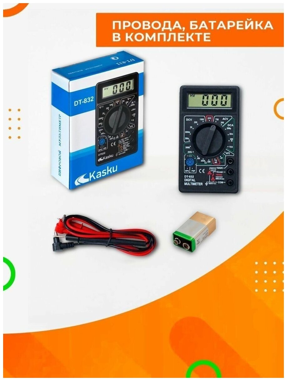 Цифровой мультиметр портативный DT-832 / тестер для измерения напряжения, силы тока, сопротивления