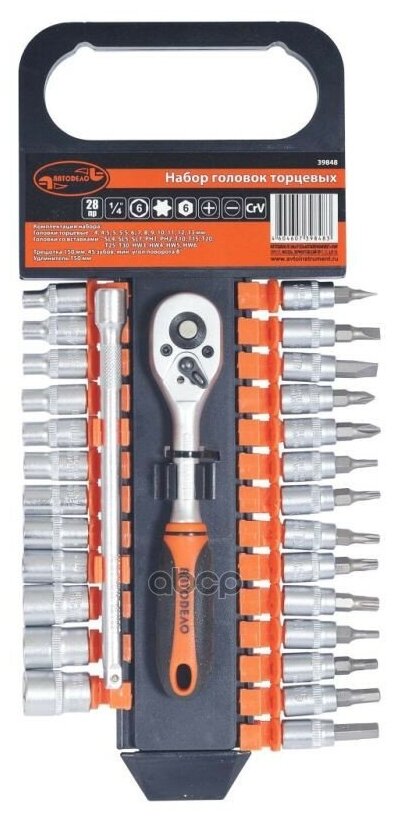 Автодело 39848 Набор головок 1/4" 28 пр. 6 гр. 4-13 мм на держателе АвтоДело интересное: