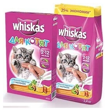 Whiskas корм для котят всех пород, подушечки с молоком, индейкой и морковью 1,9 кг