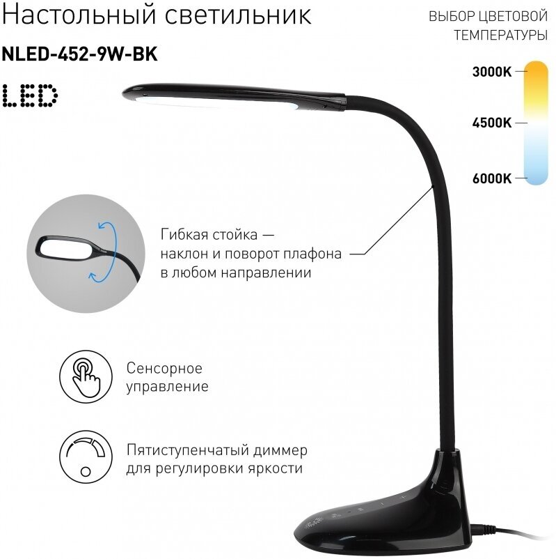 Светильник настольный ЭРА NLED-452 9W 3000K, 4500K, 6000K светодиодный черный интересное: