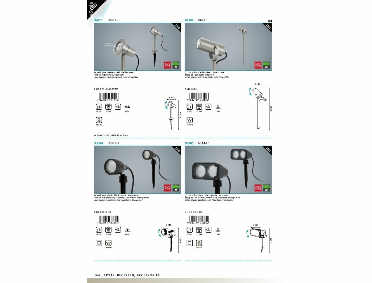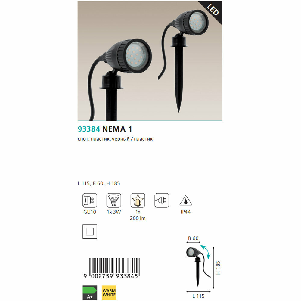 93384 Ландшафтный светодиодныйспот EGLO NEMA 1 на колышке с кабелем и штекером