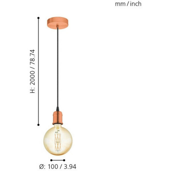 32539 Подвес YORTH, 1х60W (E27), ?100, H2000, сталь, брашированный медный