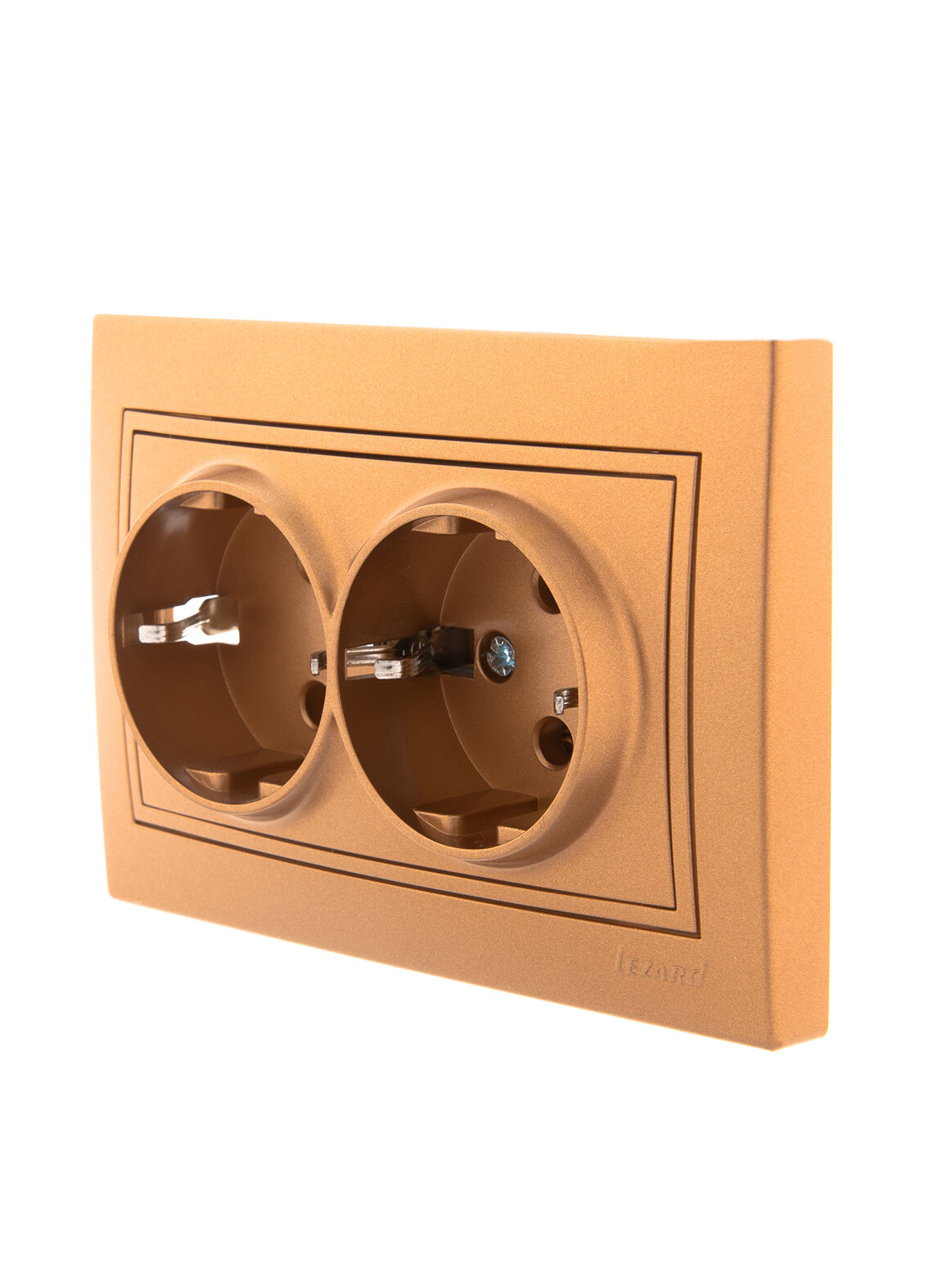 Купить Розетка 2-м СП Mira 16А IP20 с заземл. со вставкой керамика зол. метал. LEZARD 701-1313-127