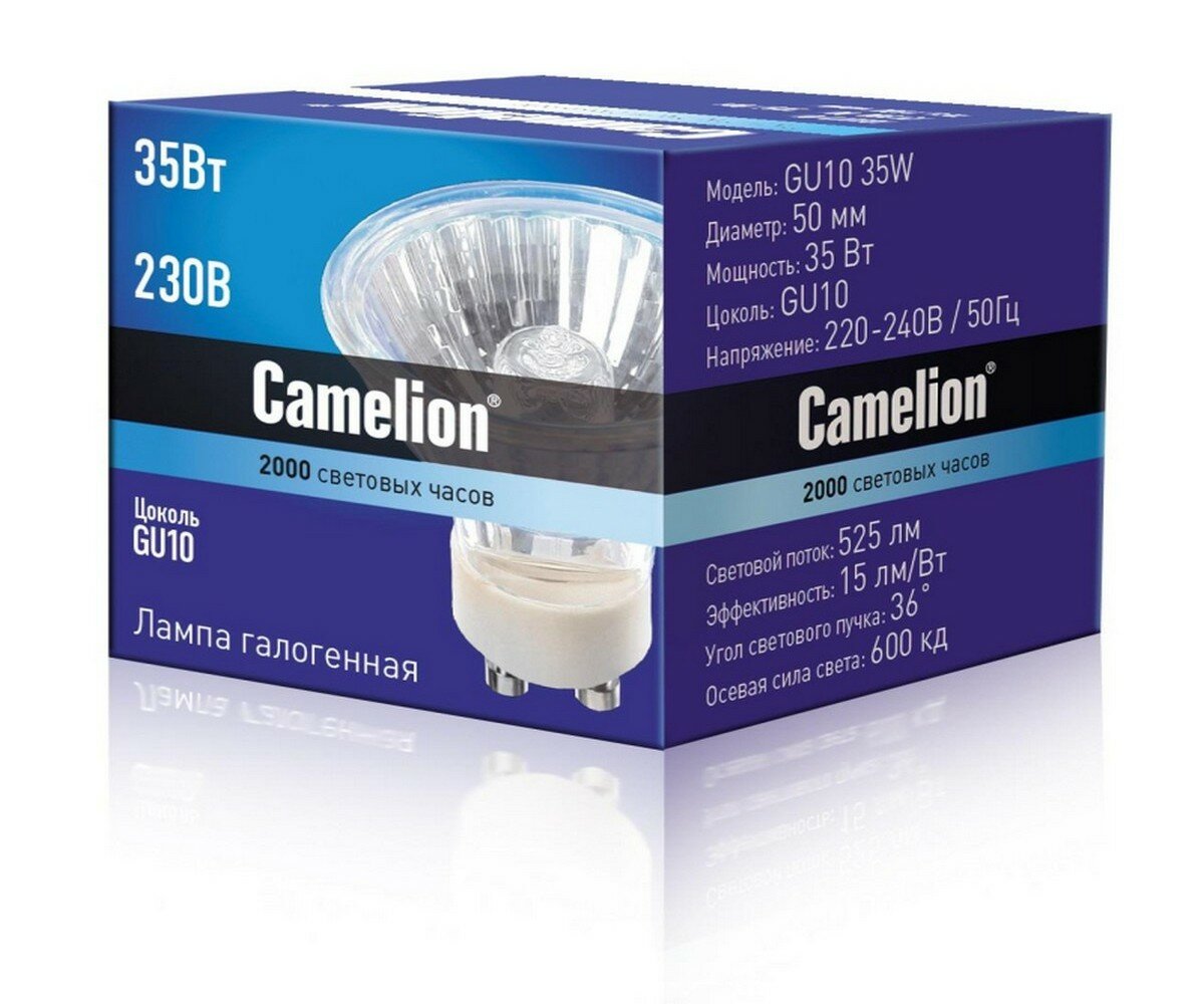 Галогенная лампа с защитным стеклом Camelion GU10 35W