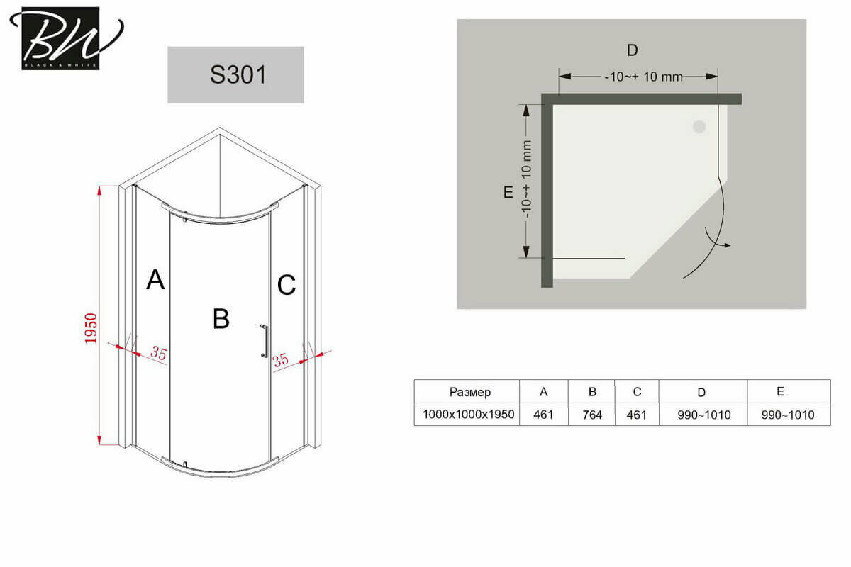 Душевой угол Black&White 90х90 S305-900х900 без поддона, стекло прозрачное, профиль хром
