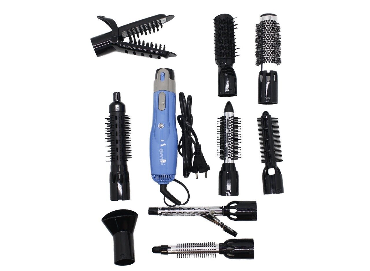 Фен щетка GM-4833 голубой для укладки волос с насадками 10 в 1