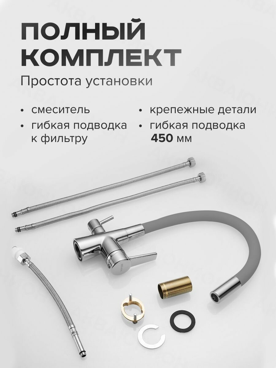 Смеситель для кухни с гибким изливом и подключением фильтра Shevanik S668, хром/серый