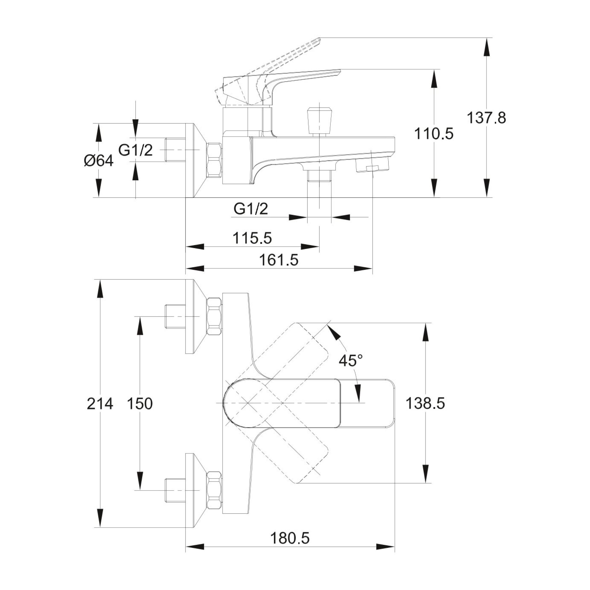 | Длина излива | 161 мм |
