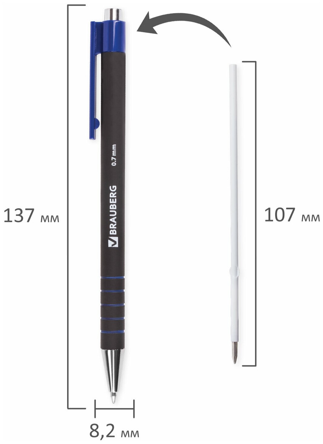 Ручка шариковая автоматическая BRAUBERG "Capital+", синяя, корпус soft-touch, узел 0,7 мм, линия письма 0,35 мм, 141169 12 шт интересное: