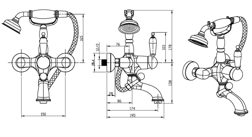 Смеситель для ванны с душем Boheme Tradizionale Oro (283) интересное:
