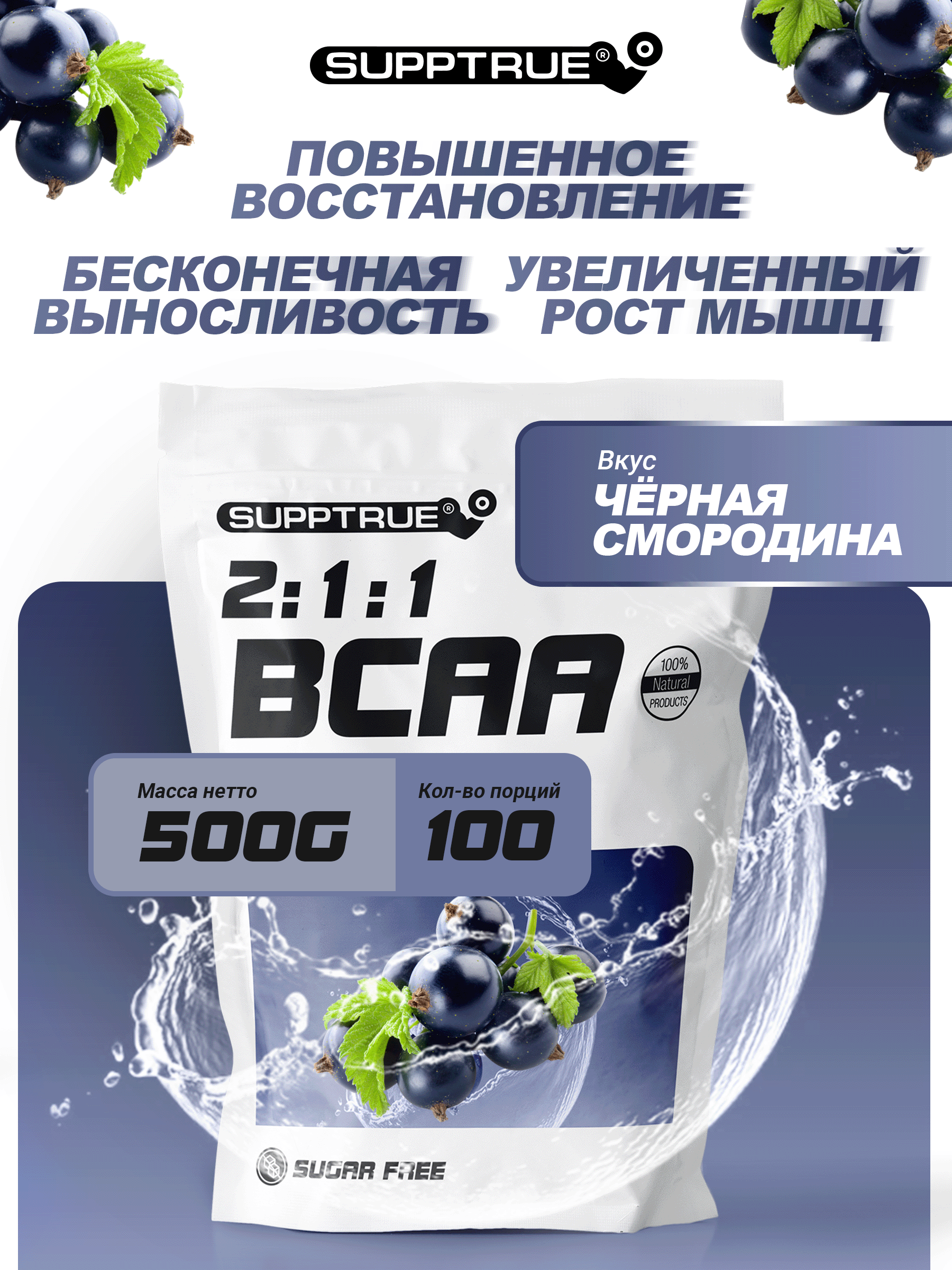 Купить Supptrue Незаменимые аминокислоты BCAA 2:1:1 со вкусом Черная смородина 500г