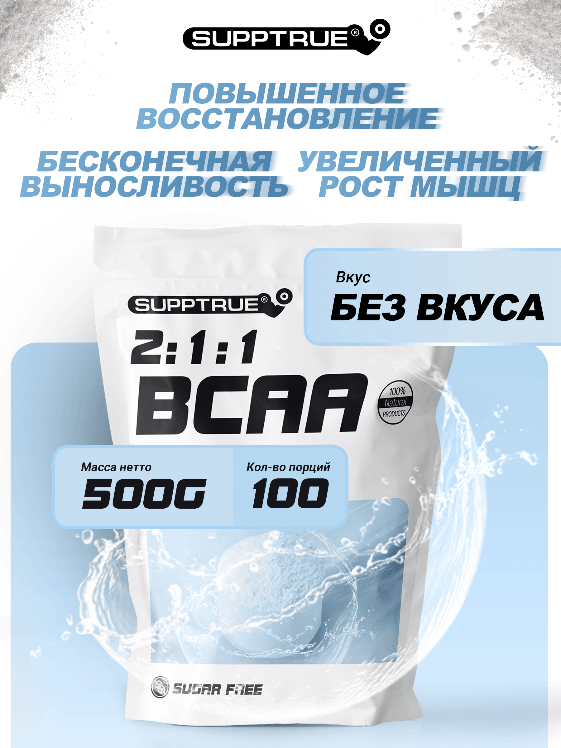 supptrue / Комплексная пищевая добавка BCAA 2:1:1 Незаменимые аминокислоты спортивное питание