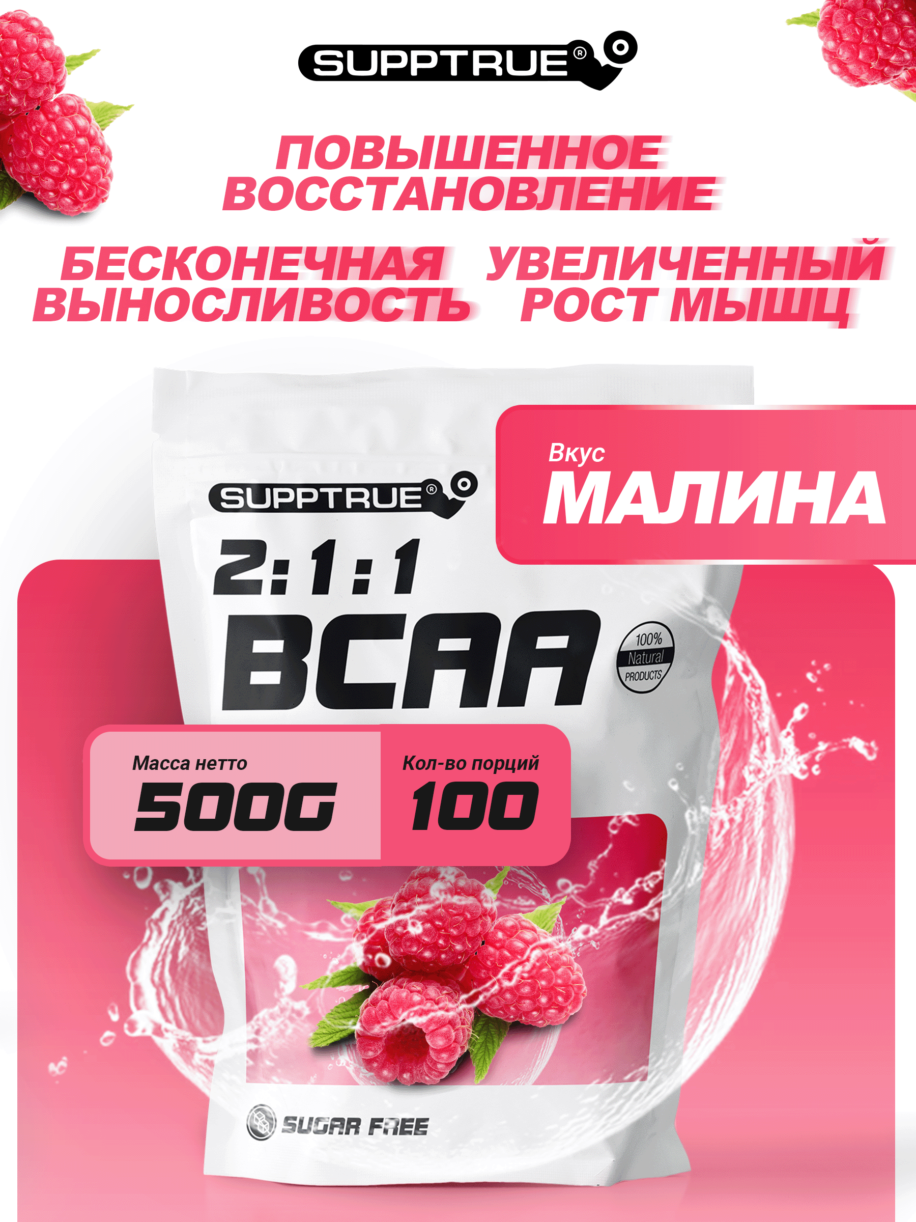 Купить Supptrue Незаменимые аминокислоты BCAA 2:1:1 со вкусом Малина 500г