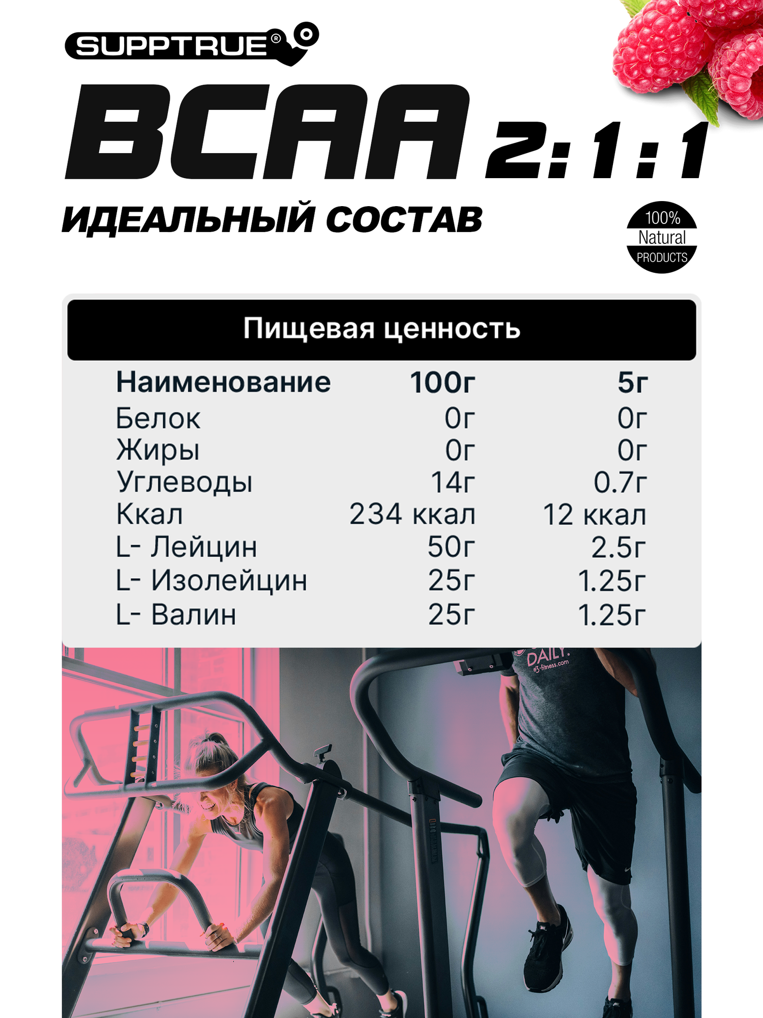 СохранитьSupptrue Незаменимые аминокислоты BCAA 2:1:1 со вкусом Малина 500г интересное: