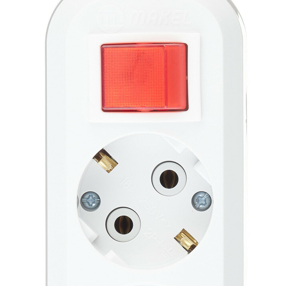 Удлинитель Makel 3 розетки 5 м ПВС 3х1 мм2 16 А 2,2 кВт с кнопкой белый (MGP214)