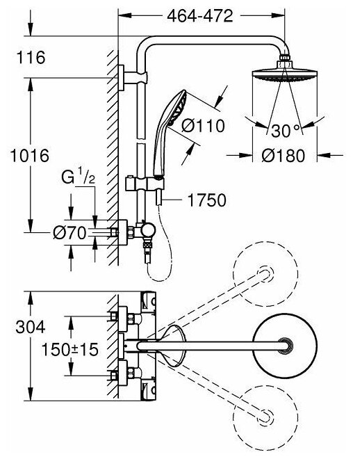 | Форма верхнего душа | круглая |