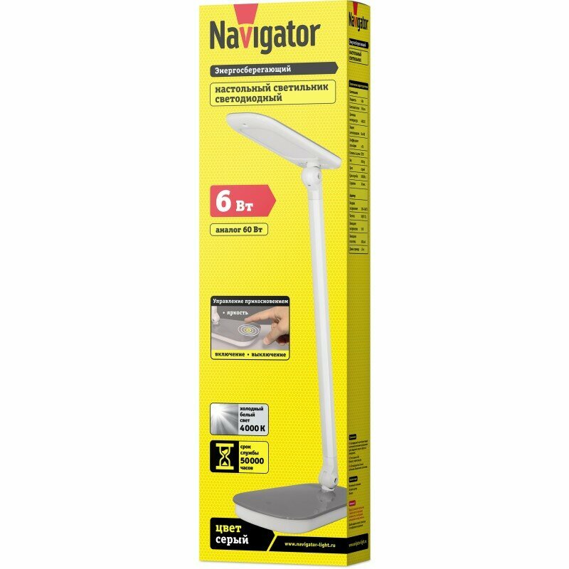Настольная лампа NAVIGATOR GROUP Navigator 71 270 NDF-D017-6W-4K-S-LED на осн., диммер., серебристый