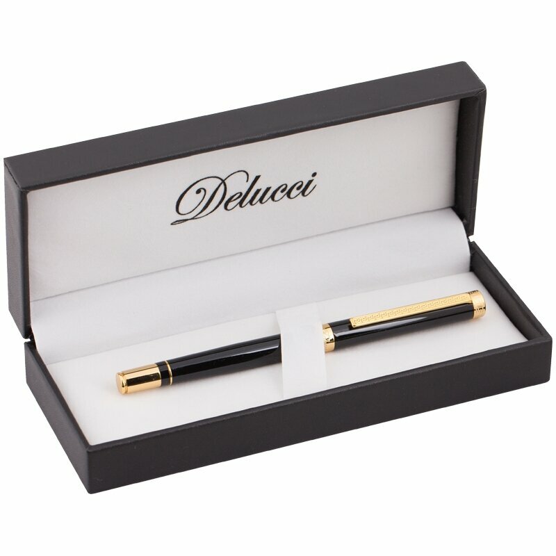 Ручка-роллер Delucci Classico, черная, 0,6мм, корпус черный, золото, подарочная упаковка