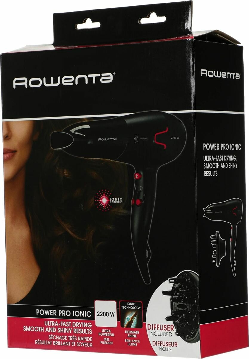 Фен ROWENTA CV5623F0, мощность 2200 Вт, 2 скорости, 3 температурных режима, черный, 1830008470