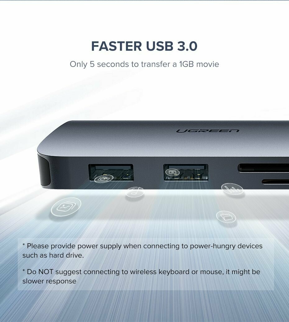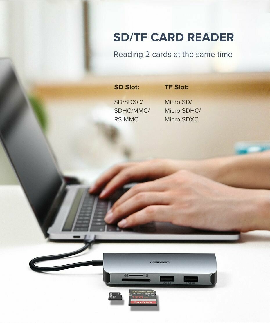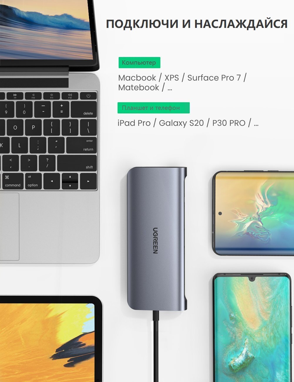 Адаптер Ugreen 80133 USB Type-C хаб 10 в 1 VGA/HDMI/RJ45/SD/USB 3.0/3,5мм интересное:
