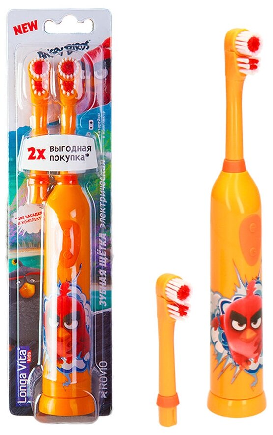 Зубная щетка LONGA VITA Angry Birds электрическая со сменной насадкой с 3лет Оранжевая