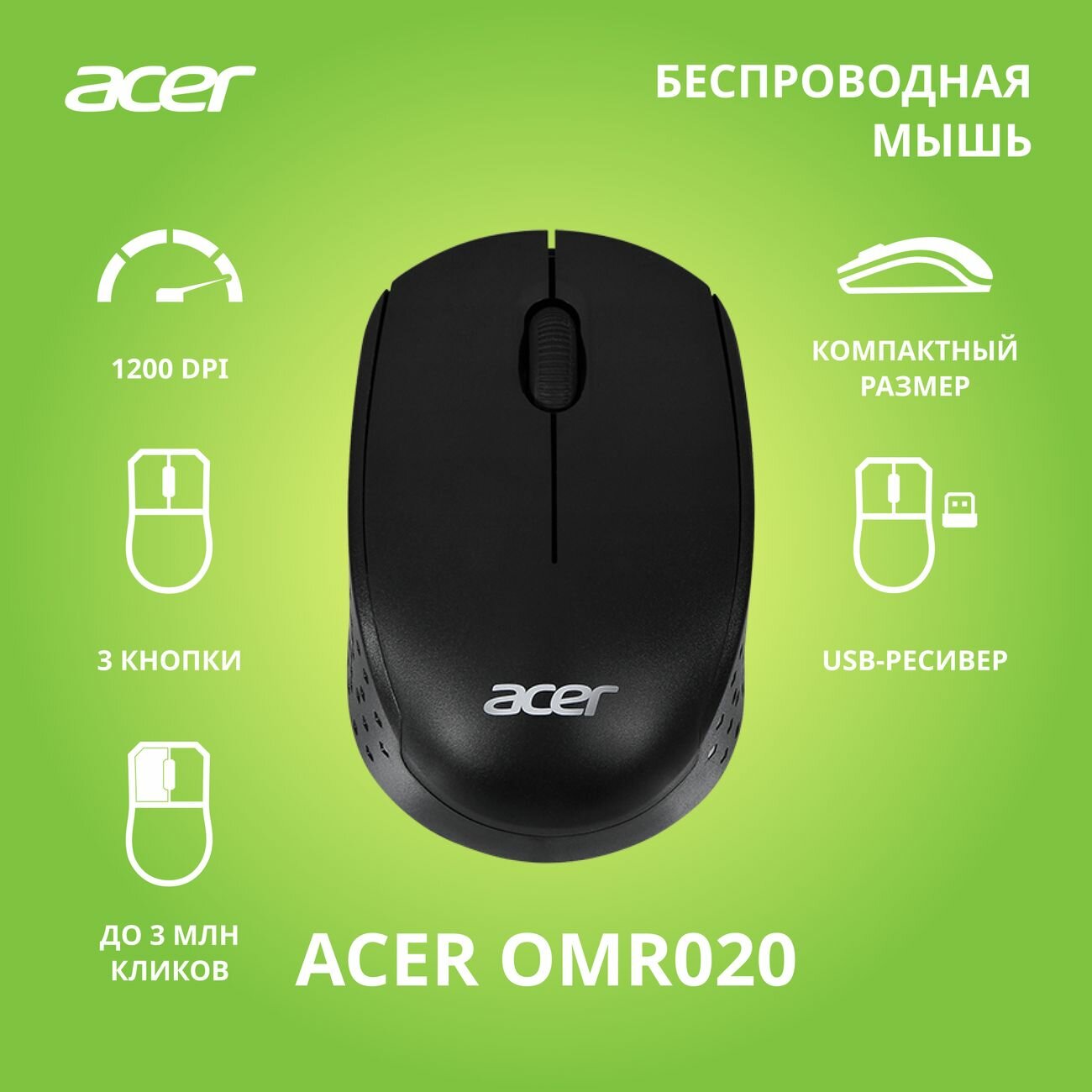 Мышь Acer OMR020, оптическая, беспроводная, USB, черный [zl.mceee.006]