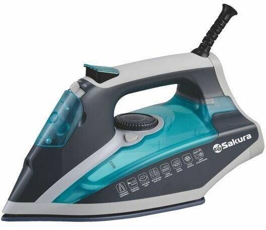 Утюг Sakura SA-3061CG Premium, 2600 Вт, керамическая подошва, 400 мл, серо-бирюзовый 7402759