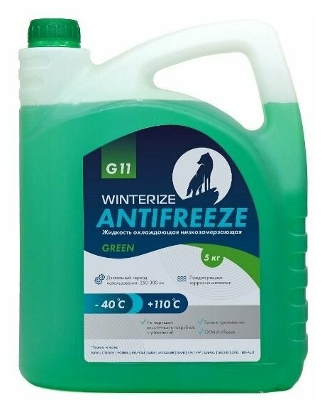 Охлаждающая жидкость Winterize Антифриз G11 зеленый -40 5кг WINTERIZE WAG11GR5 | цена за 1 шт | минимальный заказ 1 интересное: