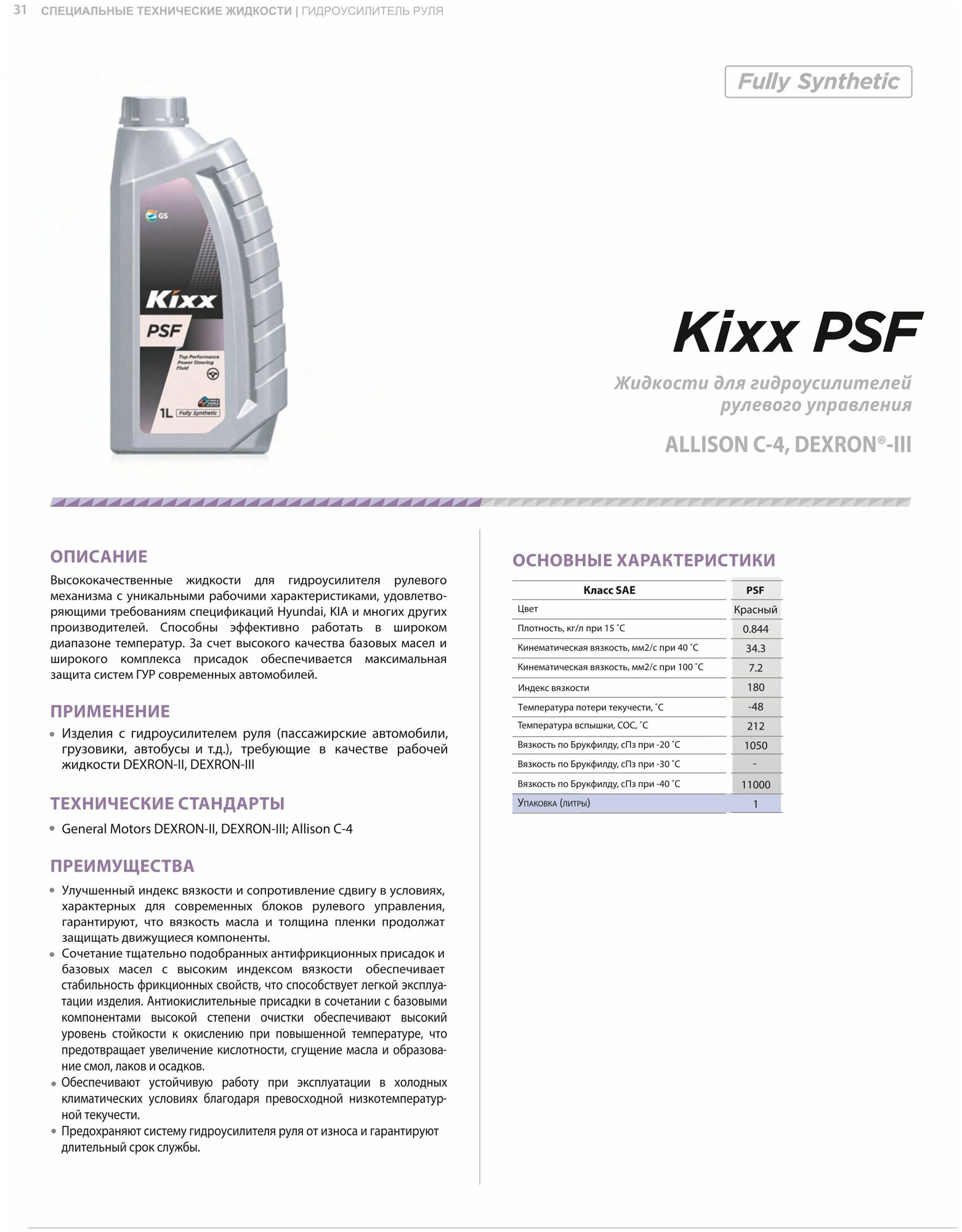 Жидкость для ГУР KIXX PSF красная - 1л. интересное: