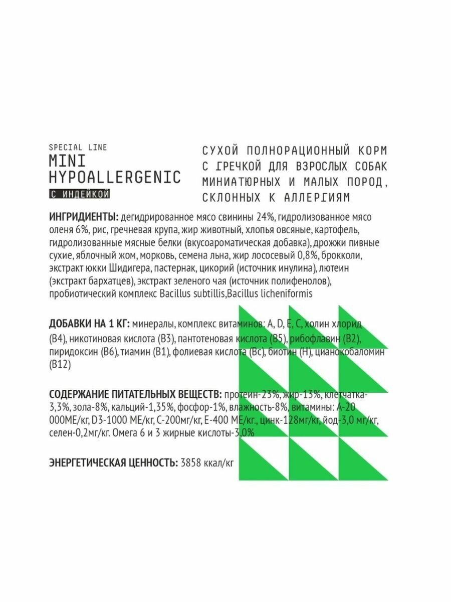 Сухой корм AJO DOG SPECIAL LINE MINI HYPOALLERGENIC для взрослых собак маленьких пород при пищевой аллергии с индейкой и гречкой (2 кг)