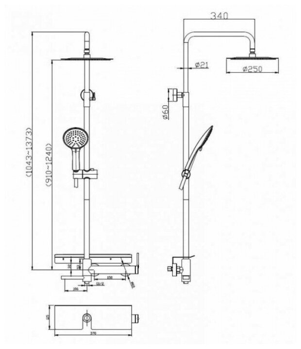 | Комплектация | верхний душ / держатель лейки / душевая стойка / излив для набора воды / лейка / полочка / шланг |