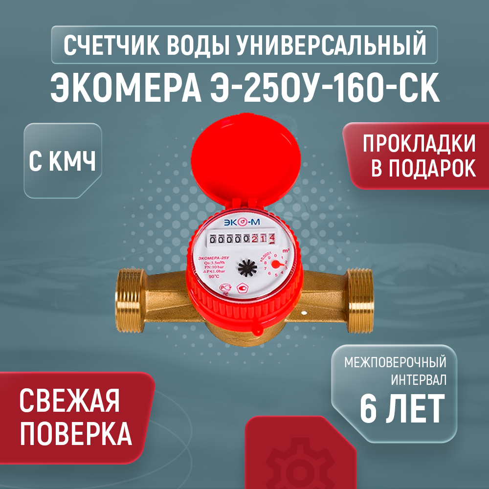 ЭКО-М Счетчик воды экомера -25 одноструйный универсальный Э-25ОУ-160-СК